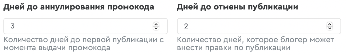 Дней до аннулирования промокода - количество дней, которые будут указаны в таймере у блогера, для внесения скринов. По истечении промокоды будут отвязаны